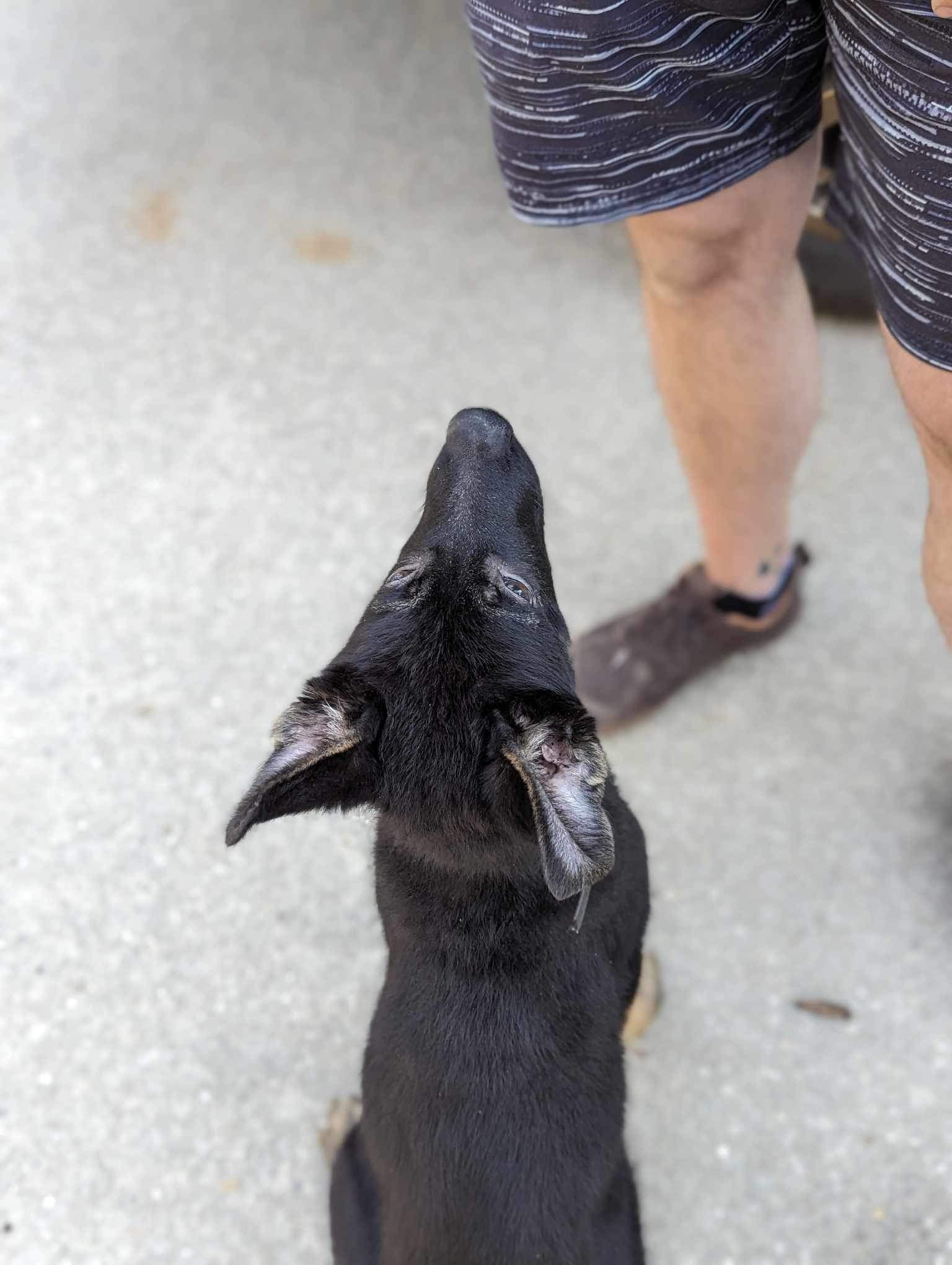 3. When they look up at you, mark “Yes!” and reward them with another treat on the ground.